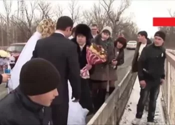 În ziua cea mare, mireasa a aruncat buchetul în apele înghețate ale râului, după tradiția locală. Ce s-a întâmplat imediat...
