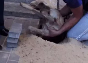 O cățea care era gravidă a fost îngropată sub pietrele pavajului din orașul rusesc Voronezh, ea a stat acolo timp...