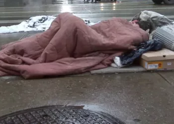 Un bărbat fără adăpost dormea într-o stație de autobuz în Manchester, Marea Britanie, o femeie, pe nume Bev, l-a observat...
