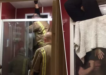 O femeie a mers la o întâlnire dar a ajuns să fie salvată de pompieri după ce a rămas blocată...